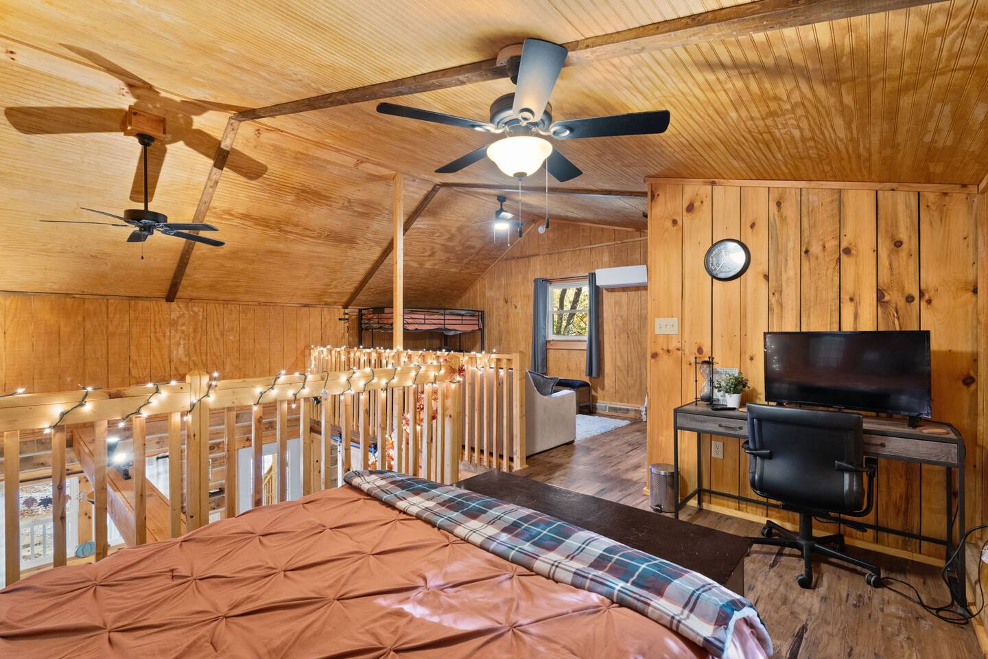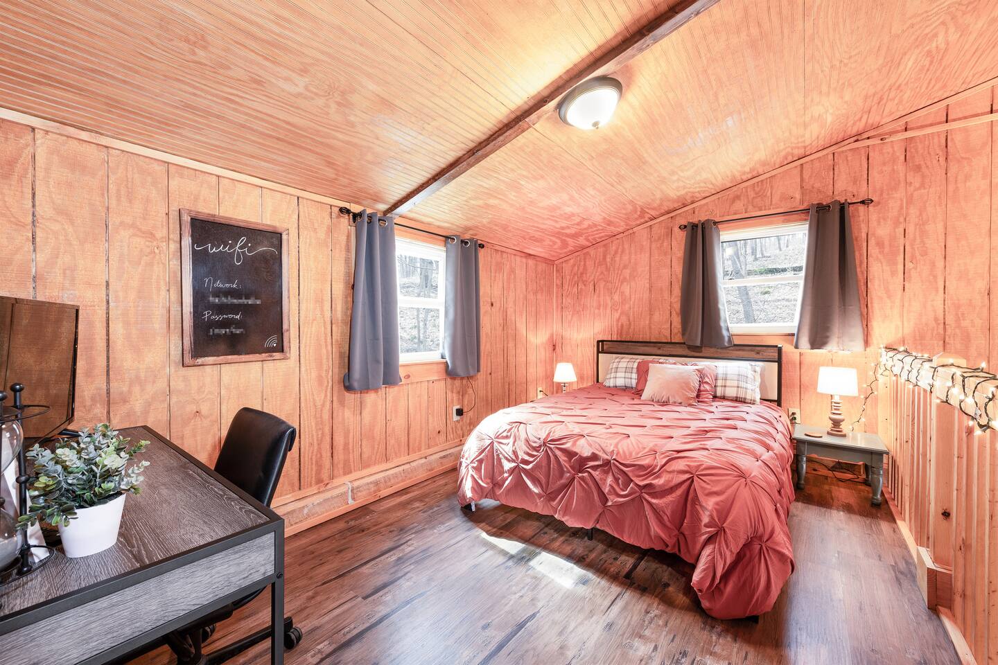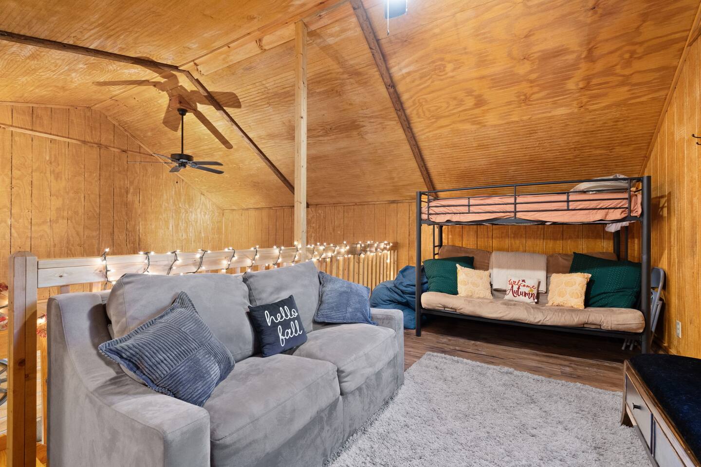 Reconnect at our family’s personal cabin near Patoka Lake. We are family-friendly retreat that can sleep up to 10. Set on a wooded acre with a serene view, the cabin is minutes from Patoka Lake’s entrance and the renowned Patoka Winery. The area offers plentiful hiking trails, golf courses, and the Historical French Lick hotels are within a 20-minute drive. Drive 30 miles to ski at Paoli Peaks or spend the day riding roller coasters at Holiday World. Spend time on the front porch or screened back porch relaxing and enjoying the view. For your convenience a gas grill is available. Enjoy s’mores around the fire pit, or on cooler nights, playing board games or stepping back into time with our retro game system. Fully furnished with a washer/dryer onsite for your convenience. Please note that two of the bedrooms are in the open loft area.