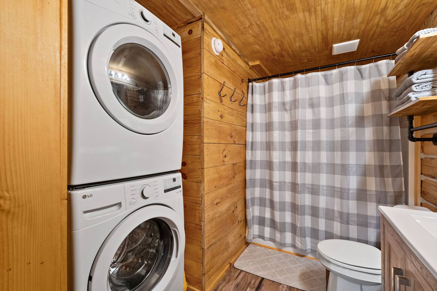 - Gas grill is located on the side. A tank will be provided, but gas is not guaranteed, however, there occasionally could be some left from a previous guest. -A fire extinguisher and first aid kit are located beneath the sink. -There is NO dishwasher. A washer and dryer are in the downstairs bathroom for your convenience. -Drive is gravel and somewhat steep. Will accommodate 3 cars. If boat parking is needed, please contact us for options. -A FREE lake pass is provided in the guestbook. Failure to return the lake pass will result in a $75.00 replacement fee.